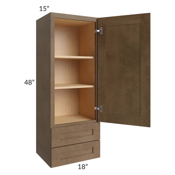 Midtown Mocha Shaker 18x48x15 Wall Cabinet with Drawers
