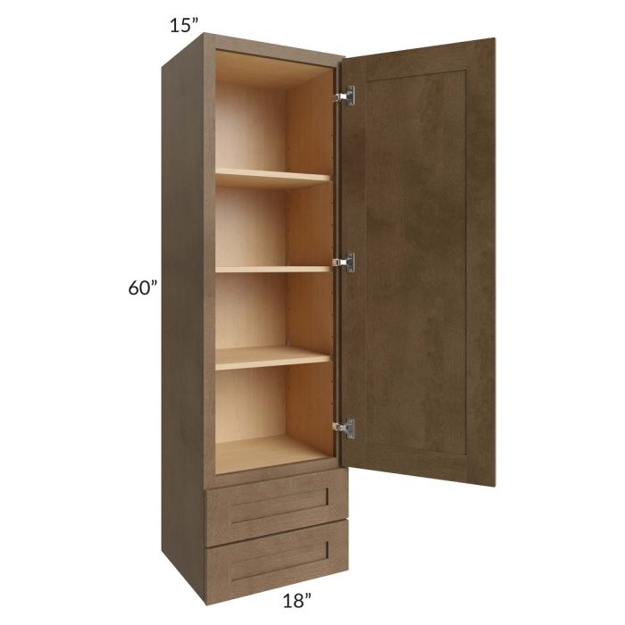 Midtown Mocha Shaker 18x60x15 Wall Cabinet with Drawers