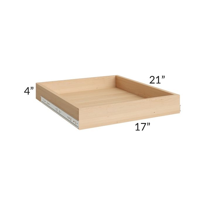Roll out tray to be used in a 21" base cabinet. Interior height of tray is 3-1/4". The roll out comes with full extension, ball-bearing glides (not soft-close). Please note this roll out tray will only work with this collection. ***Please specify which cabinet to install this item in under the order comments when checking out or it will ship loose.***