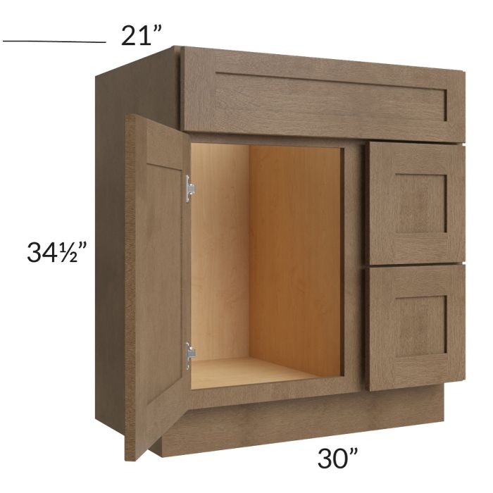 Midtown Mocha Shaker 30" Vanity Sink and Drawer Combo (Drawers on Right)