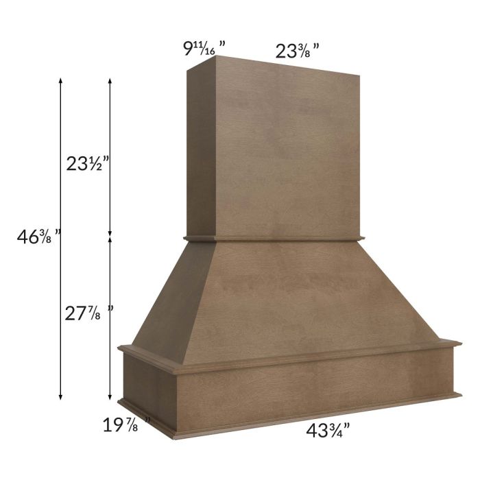 Signature style wood hood that comes with a stainless steel liner. The chimney height of 23-1/2" can be trimmed on site, if needed. Blower is not included and would need to be purchased separately. The chimney depth is 9-11/16" and the width is 23-3/8".