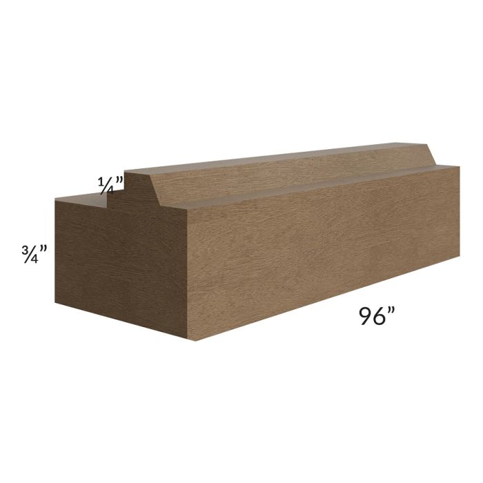 Light rail molding, overall depth is 1-1/2", the flat part that will install under the wall cabinets is 3/4" deep. The lip that will extend over the front of the wall cabinet is 1/4" high.