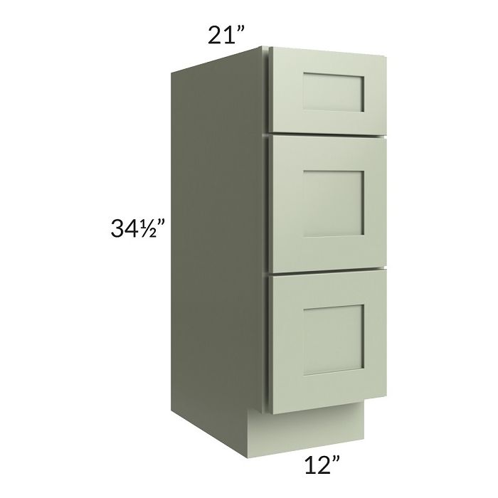 Description / Midtown Pistachio Green Shaker 12" Vanity 3-Drawer Base Cabinet
