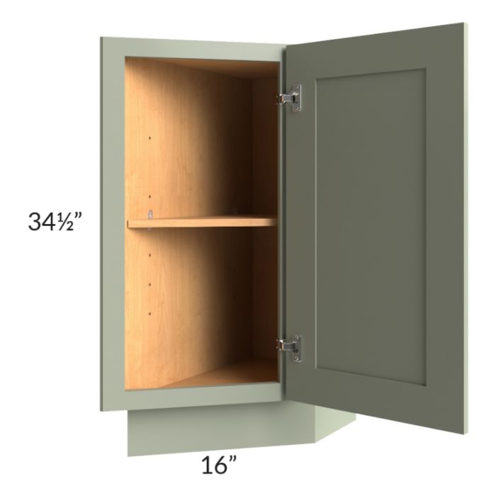 Full height door cabinet that is meant to be used at the end of a cabinet run. It will have a 24" deep side on the left which gets installed against the adjacent cabinet. The door is 16" wide and angled. The exposed side of the cabinet (on the right) will be 12" deep.