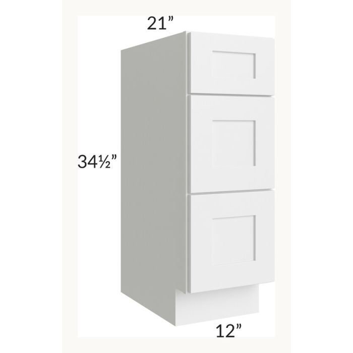 Description / Midtown White Shaker 12" Vanity 3-Drawer Base Cabinet