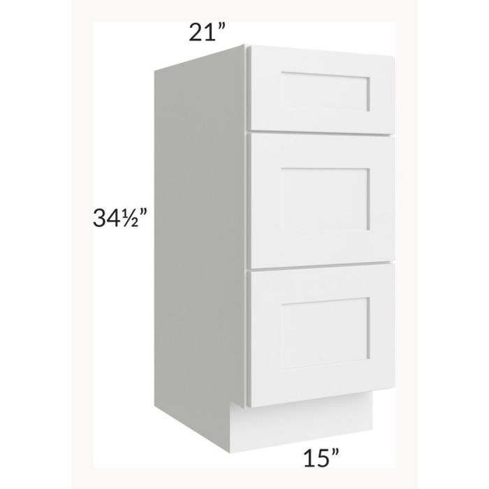 Description / Midtown White Shaker 15" Vanity 3-Drawer Base Cabinet