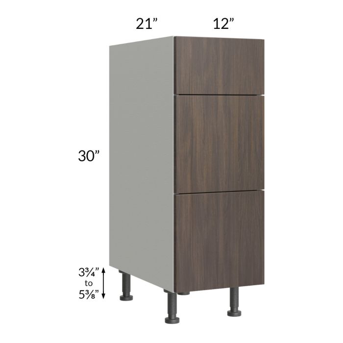 Milan Cafe 12" Vanity 3-Drawer Base Cabinet