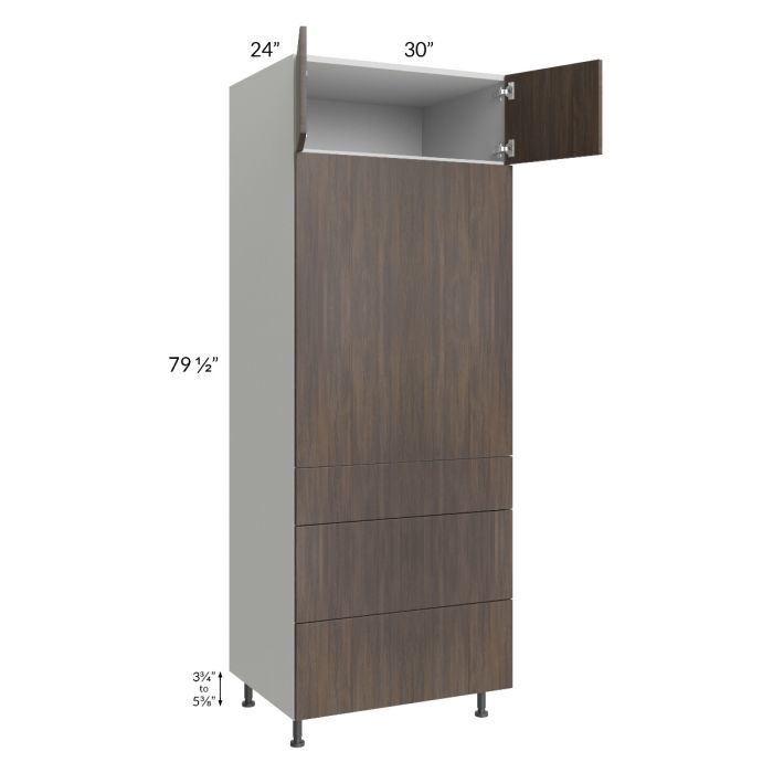 Milan Cafe 30x84 Single Oven Cabinet with 3 Drawers