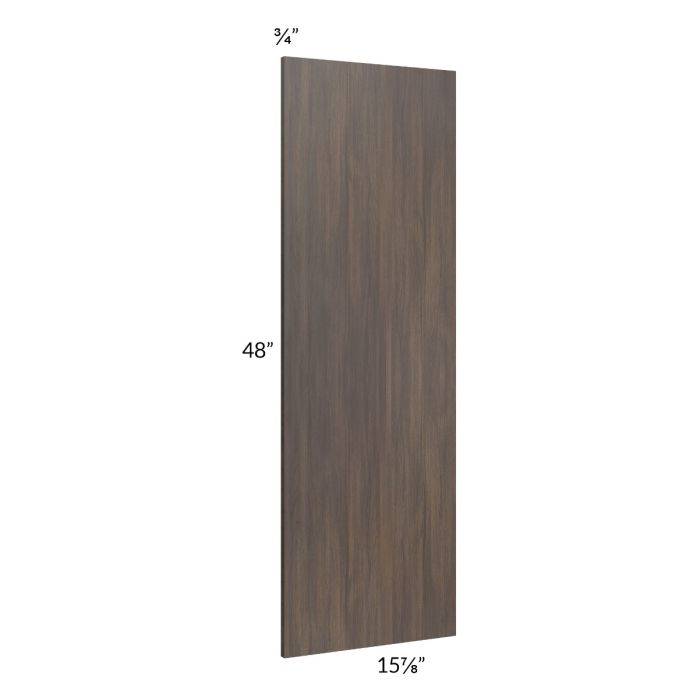 Wainscot wall panel, to be used on the exposed side of a 48" high wall cabinet with drawers, with a depth of 15". Wainscot panels will always be shipped loose and will need to be installed on site. The panel is deep enough to cover the side of the door, giving the door a built in look.