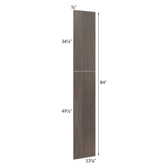 Wainscot tall panel set of 2 doors, to be used on the exposed side of an 84" tall cabinet with a 13" depth. It will match the door style of the cabinets being ordered. The bottom door will be 49-1/2" high and the top door will match the remaining height of the cabinet. Wainscot panels will always be shipped loose and will need to be installed on site. The panel is deep enough to cover the side of the door, giving the door a built in look.