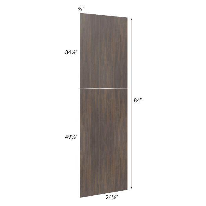 Wainscot tall panel set of 2 doors set of 2 doors, to be used on the exposed side of an 84" tall cabinet with a 24" depth. It will match the door style of the cabinets being ordered. The bottom door will be 49-1/2" high and the top door will match the remaining height of the cabinet. Wainscot panels will always be shipped loose and will need to be installed on site. The panel is deep enough to cover the side of the door, giving the door a built in look.