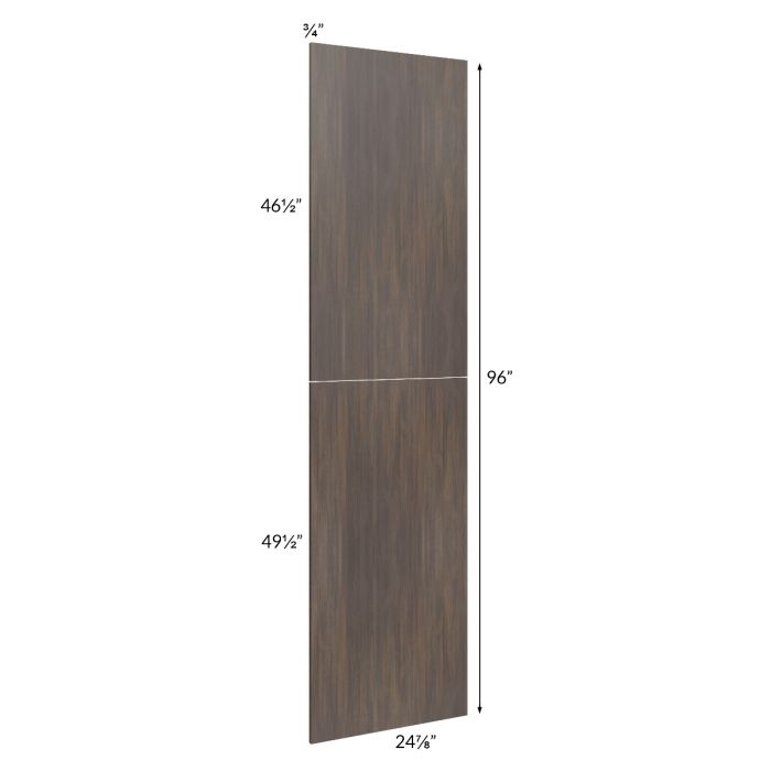 Wainscot tall panel set of 2 doors, to be used on the exposed side of an 96" tall cabinet with a 24" depth. It will match the door style of the cabinets being ordered. The bottom door will be 49-1/2" high and the top door will match the remaining height of the cabinet. Wainscot panels will always be shipped loose and will need to be installed on site. The panel is deep enough to cover the side of the door, giving the door a built in look.