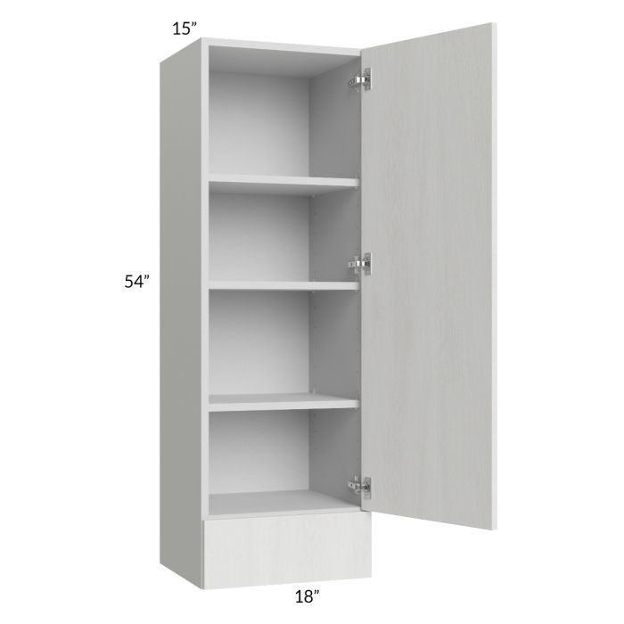 Wall cabinet with (1) 6-3/4" drawer on bottom (drawer front height) and (1) 47" high door on top. There will be 3 adjustable shelves on the top of the cabinet. The exposed sides have near-flush ends and are unfinished, wainscot panels can be ordered to finish exposed sides. **Note this cabinet has a 15" depth**