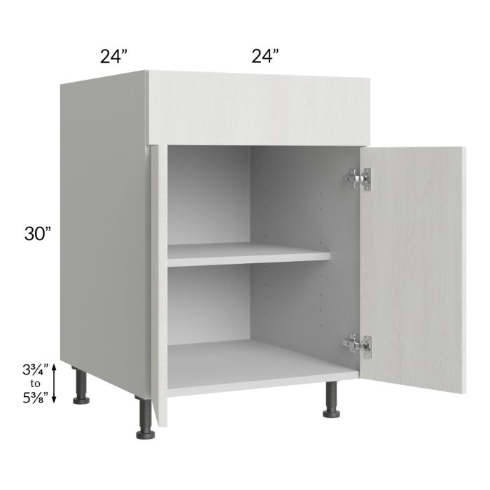 2 door base cabinet with (1) 18" deep adjustable shelves and 1 drawer. Black, adjustable, plastic furniture feet will also be included which will add 3-3/4" to 5-3/8" to the 30" height.