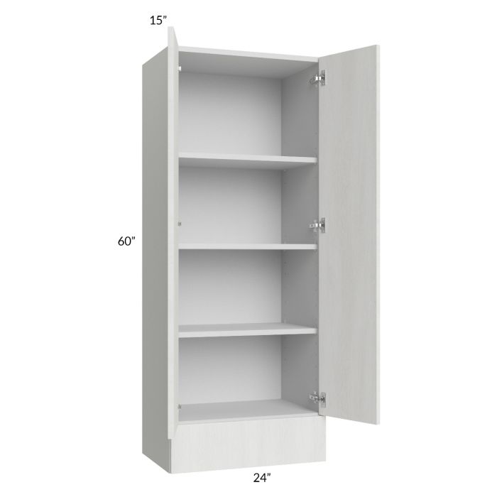 Wall cabinet with (1) 6-3/4" drawer on bottom (drawer front height) and (2) 53" high doors on top. There will be 3 adjustable shelves on the top of the cabinet. The exposed sides have near-flush ends and are unfinished, wainscot panels can be ordered to finish exposed sides. **Note this cabinet has a 15" depth**