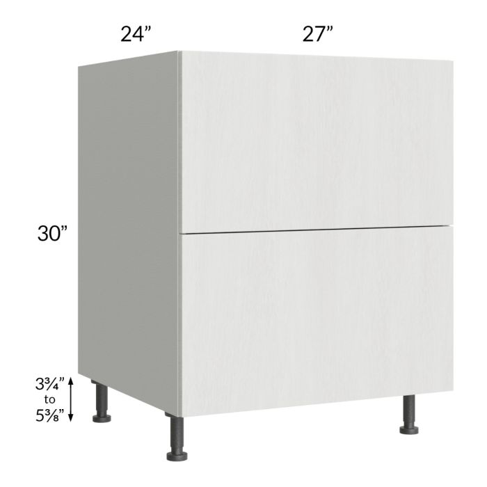 2 drawer base cabinet. Each drawer front measures 14-7/8" high. Black, adjustable, plastic furniture feet will also be included which will add 3-3/4" to 5-3/8" to the 30" height.