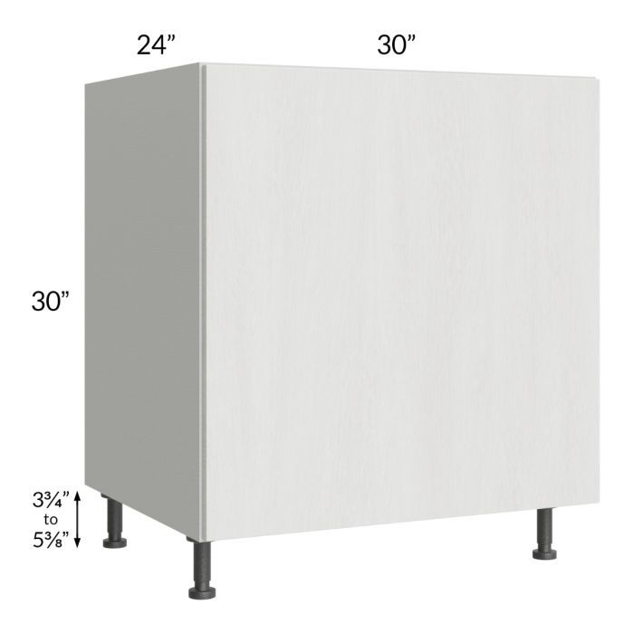 Base oven cabinet. The front panel is attached with clips for easy removal and install. Once removed, the opening will need to be cut, the maximum it can be cut is 28-1/2"W x 28-1/2"H, then the panel will be reattached back onto the cabinet. To avoid damage to the frame and side panels, please apply extra care when cutting the front panel, blue masking tape is the most commonly used to avoid splintering (strong adhesives must be avoided to avoid pulling the finish off). Black, adjustable, plastic furniture feet will also be included which will add 3-3/4" to 5-3/8" to the 30" height. *A heat shield will need to be used on both sides of an oven base cabinet or range-top base cabinet to shield the adjacent cabinet boxes from the oven heat. This can be added from the 'View Options' area for this cabinet. Each heat shield will be 30" high and can be cut to size, as needed (sold in quantities of 1, a quantity of 2 must be ordered to receive 2 heat shields).*