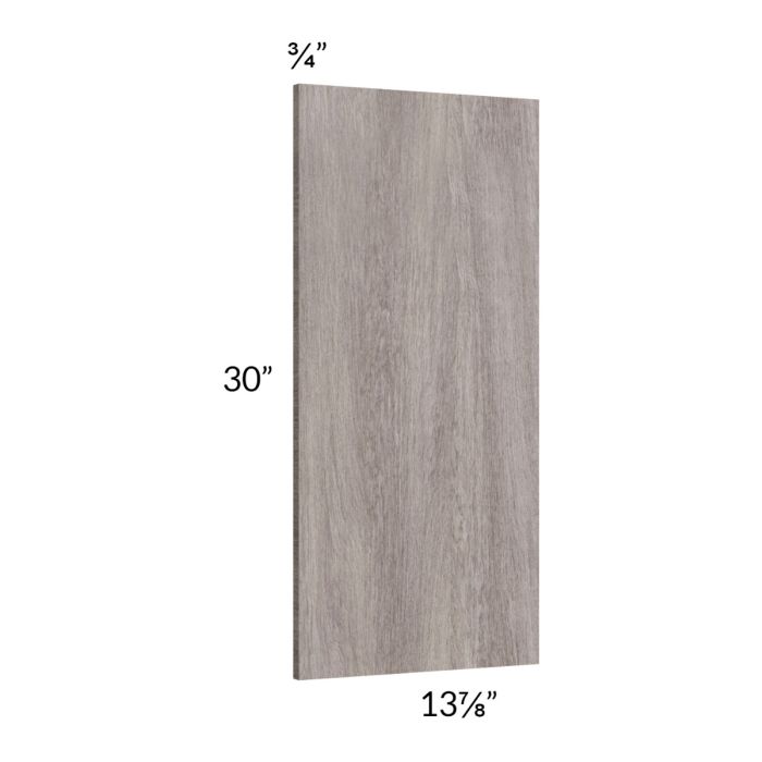 Wainscot wall panel, to be used on the exposed side of a 30" high wall cabinet with a depth of 13". Wainscot panels will always be shipped loose and will need to be installed on site. The panel is deep enough to cover the side of the door, giving the door a built in look.