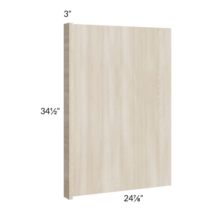 Appliance end panel with a 3" return which consists of a filler interlocked with a 1/2" plywood return panel. The exposed sides will have near-flush finished ends. The front can be trimmed down to 1" wide if necessary (edge banding may be needed in order to finish the cut edge). The sides will be flush and finished and all four edges are edge-banded.