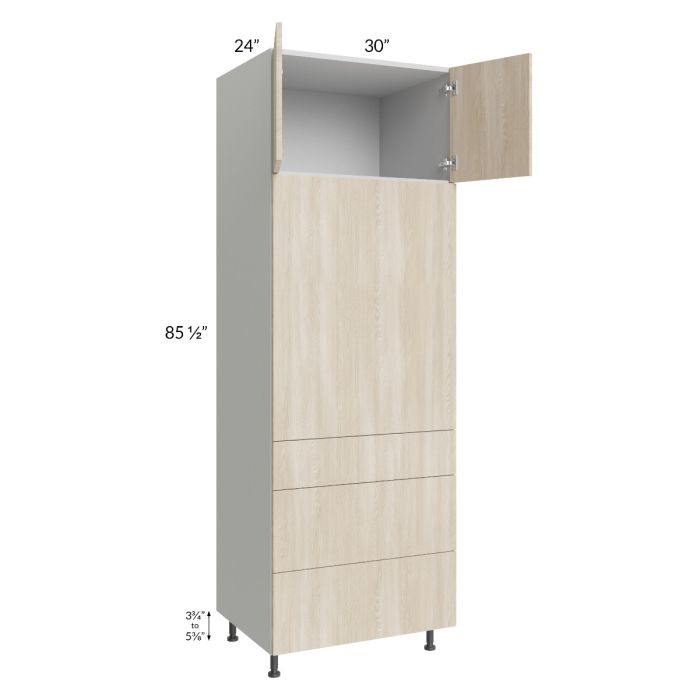 Milan Natural 30x90 Single Oven Cabinet with 3 Drawers