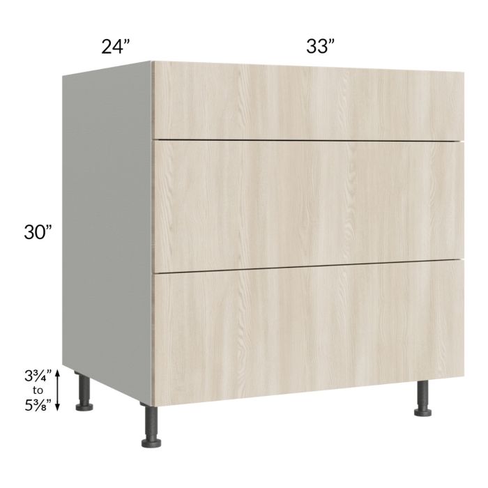 Description / Milan Natural 33" 3-Drawer Base Cabinet