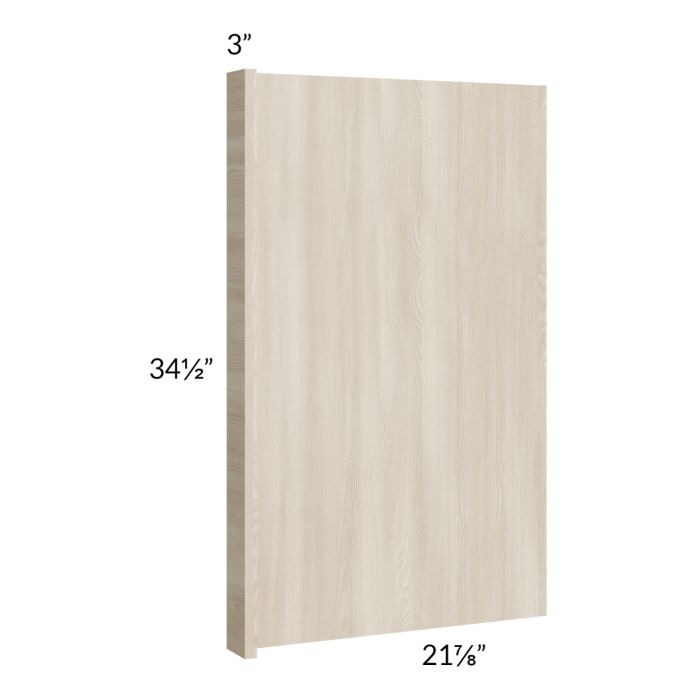 Vanity base end panel that is finished on two sides and edge-banded on all four edges.