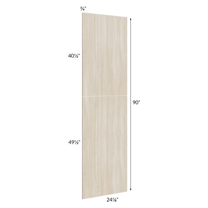 Wainscot tall panel set of 2 doors, to be used on the exposed side of an 90" tall cabinet with a 24" depth. It will match the door style of the cabinets being ordered. The bottom door will be 49-1/2" high and the top door will match the remaining height of the cabinet. Wainscot panels will always be shipped loose and will need to be installed on site. The panel is deep enough to cover the side of the door, giving the door a built in look.