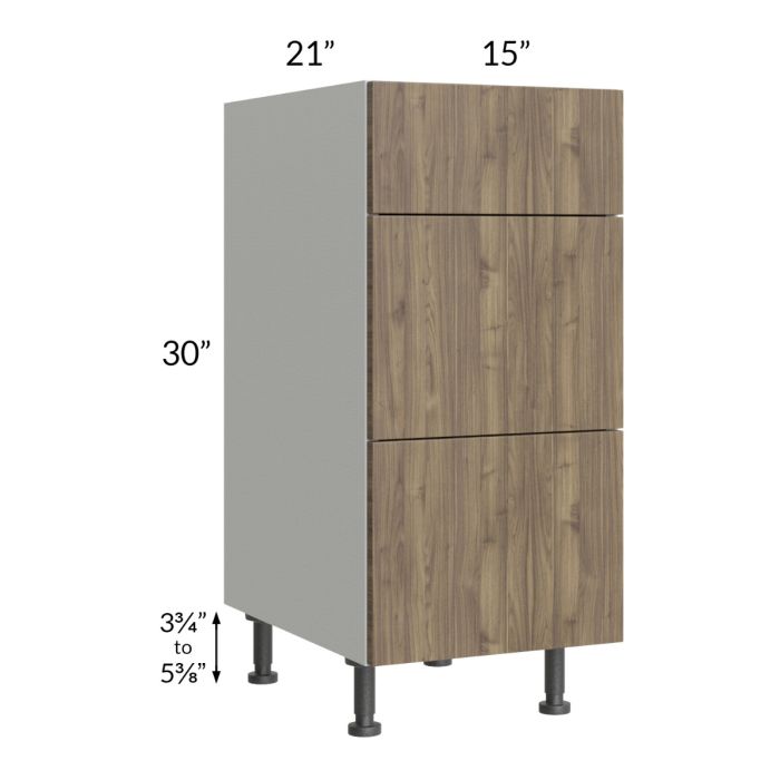 Description / Milan Pecan 15" Vanity 3-Drawer Base Cabinet