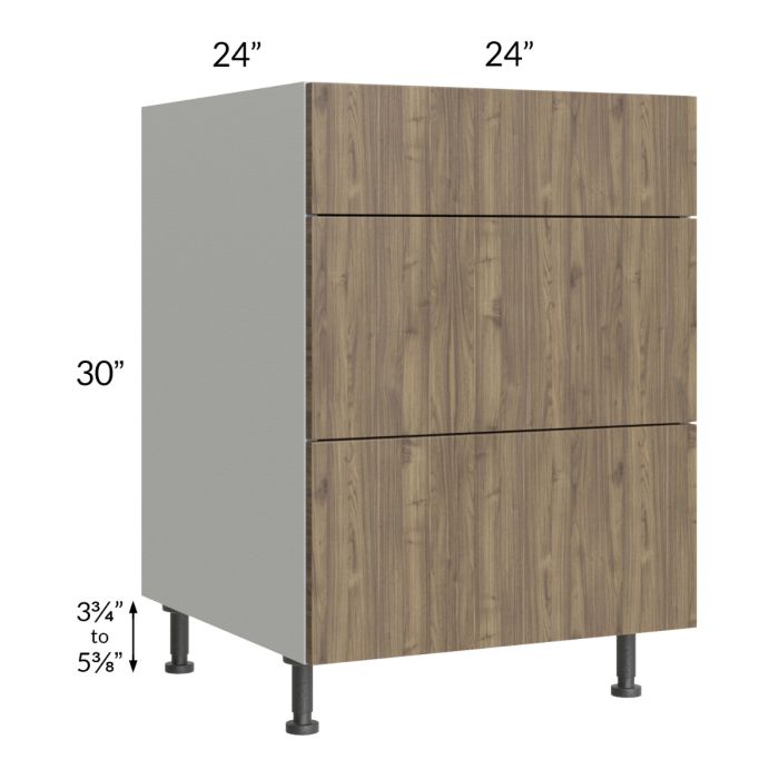 Milan Pecan 24" 3-Drawer Base Cabinet