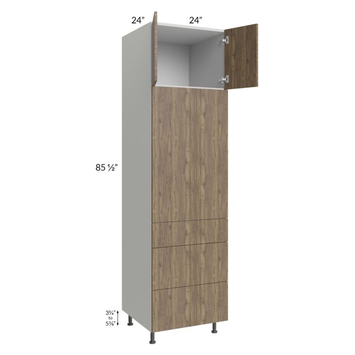 Milan Pecan 24x90 Single Oven Cabinet with 3 Drawers