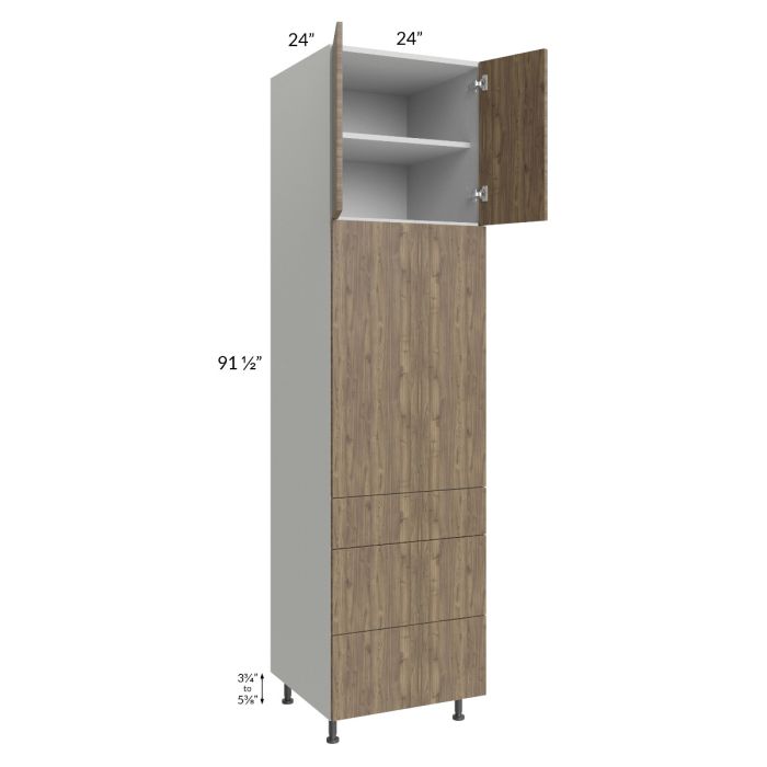 Milan Pecan 24x96 Single Oven Cabinet with 3 Drawers