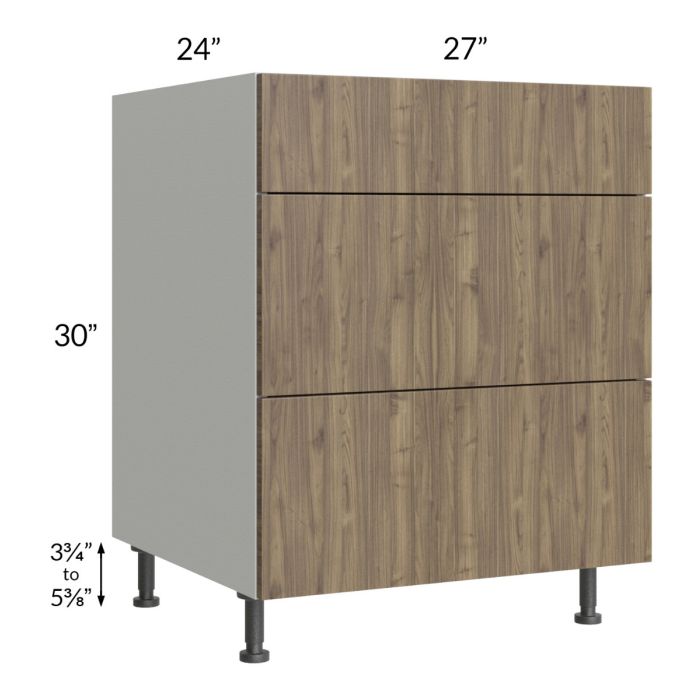 Milan Pecan 27" 3-Drawer Base Cabinet