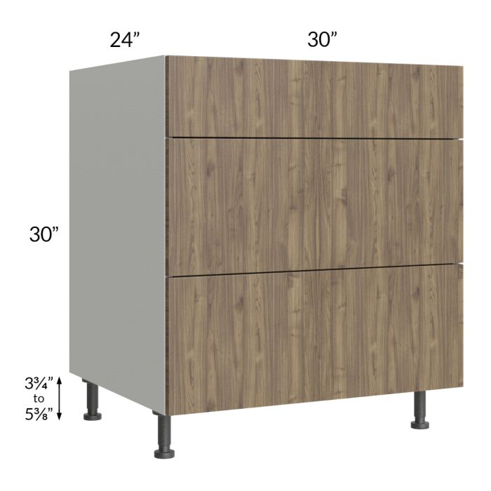 Milan Pecan 30" 3-Drawer Base Cabinet