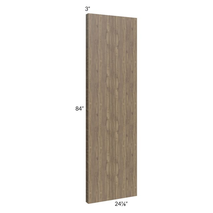 Tall column that can be trimmed on site if needed. The sides will be flush and finished, and the back will be unfinished.