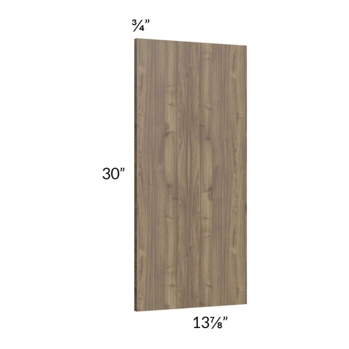 Wainscot wall panel, to be used on the exposed side of a 30" high wall cabinet with a depth of 13". Wainscot panels will always be shipped loose and will need to be installed on site. The panel is deep enough to cover the side of the door, giving the door a built in look.