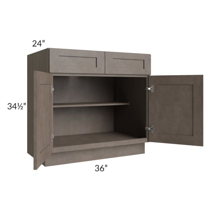2 door base cabinet with 2 drawer and 1 shelf. There is no center stile on this cabinet.