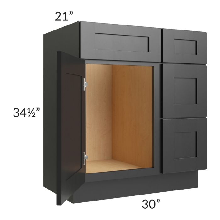 Onyx Black Shaker 30" Vanity Sink Base Cabinet (Drawers on Right)