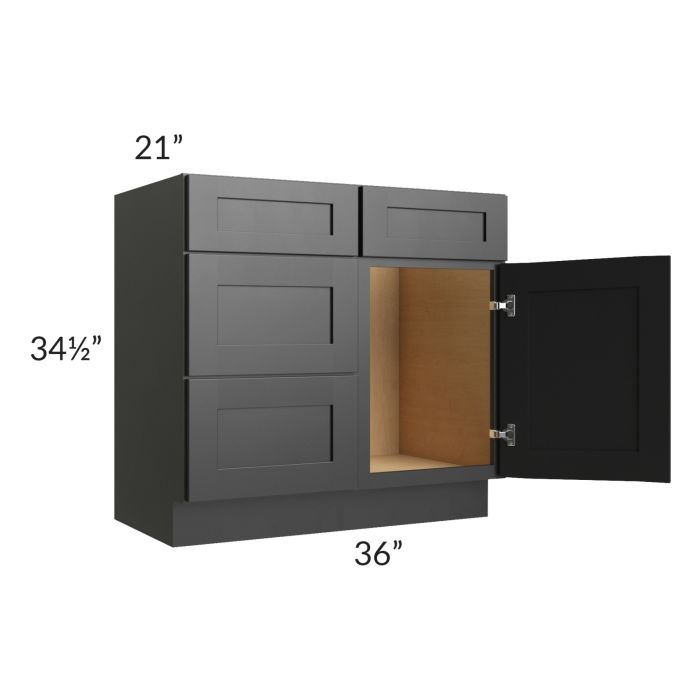 Onyx Black Shaker 36" Vanity Sink Base Cabinet (Drawers on Left)
