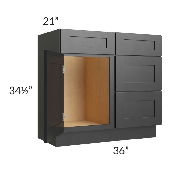 Onyx Black Shaker 36" Vanity Sink Base Cabinet (Drawers on Right)