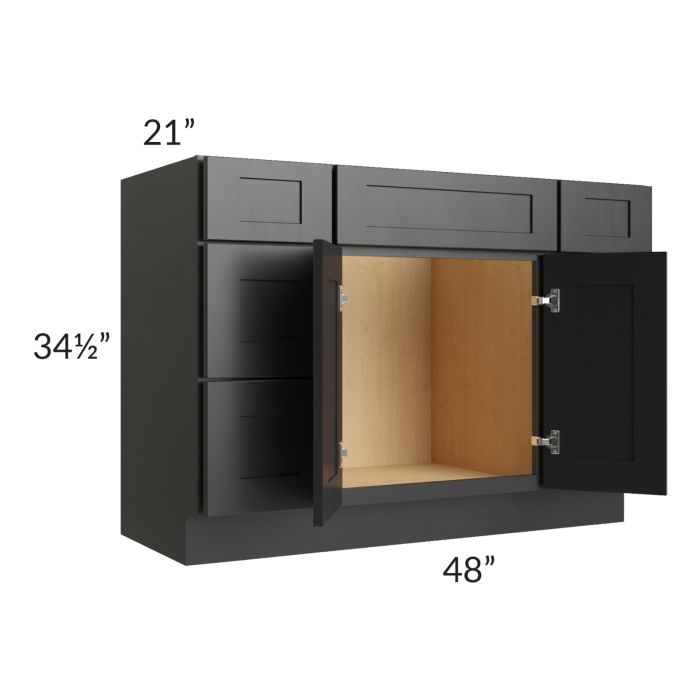 Onyx Black Shaker 48" Vanity Sink Base Cabinet with Drawers