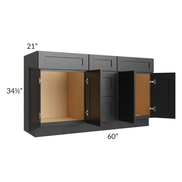Description / Onyx Black Shaker 60" Vanity Sink Base Cabinet with Drawers