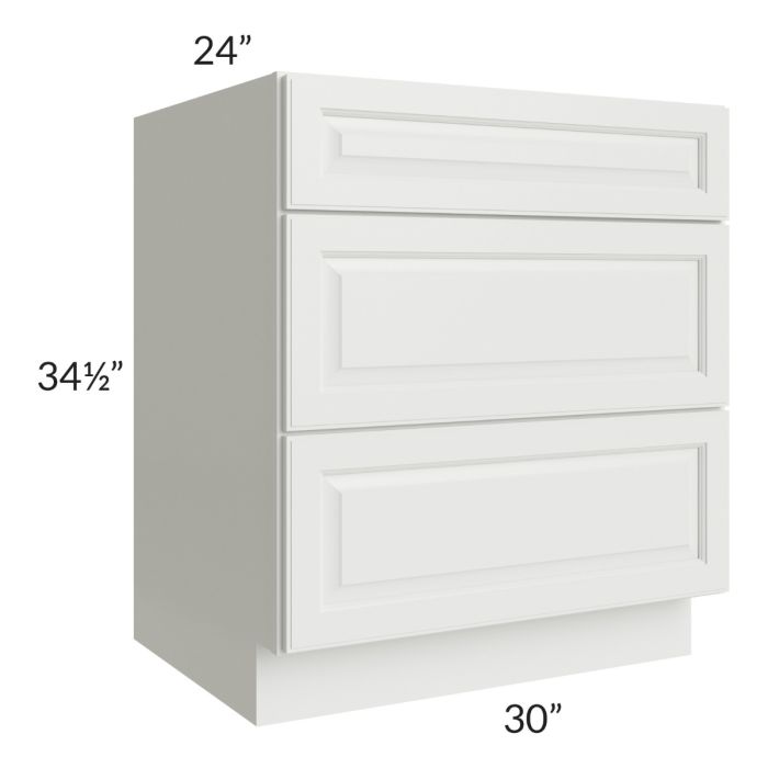 Description / Palisades White 30" 3-Drawer Base Cabinet