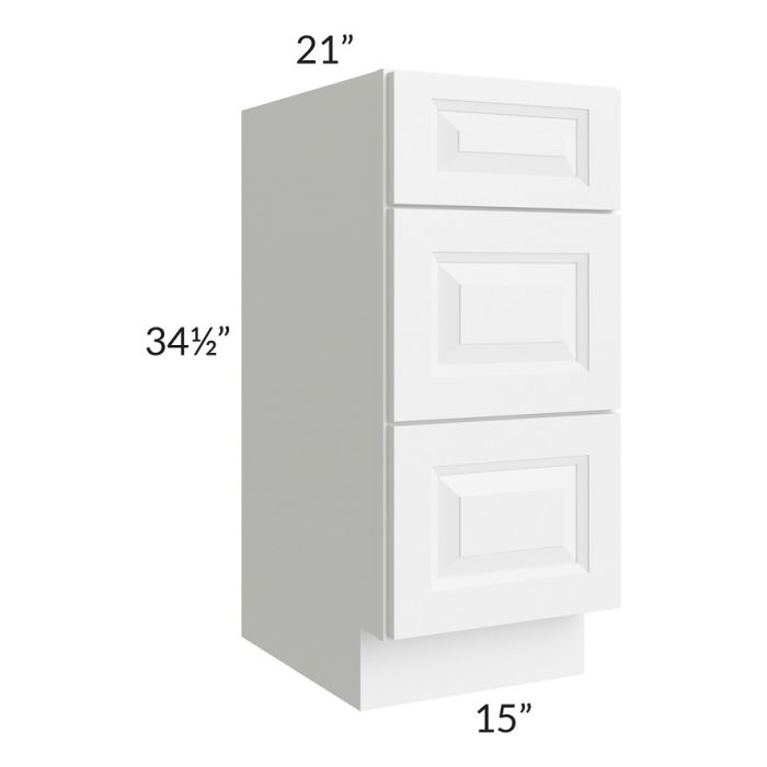 Pearl White 15" Vanity Three Drawer Base Cabinet