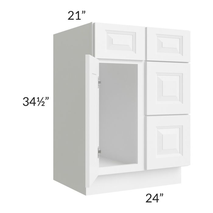Pearl White 24" Vanity Sink Base Cabinet (Drawers on Right)