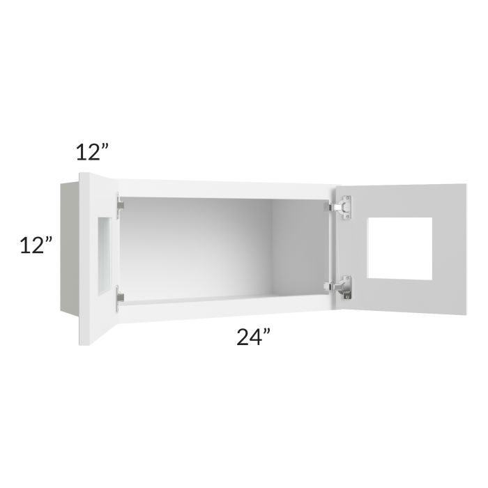Description / Pearl White 24x12 Decorative Wall Cabinet with Plain Glass