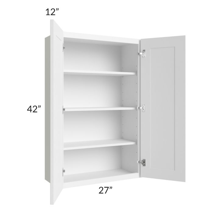 Wall cabinet that has 2 doors and 3 adjustable shelves.