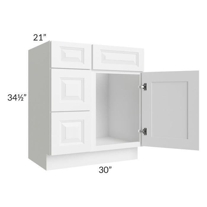 Pearl White 30" Vanity Sink Base Cabinet (Drawers on Left)
