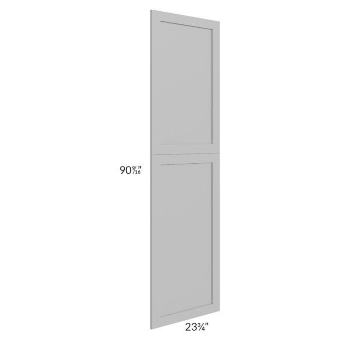 Decorative panel for the side of a 24" deep by 96" high cabinet or accessory (pantry cabinet, oven cabinet, refrigerator panel, etc...). Comes as a 2 piece door set.