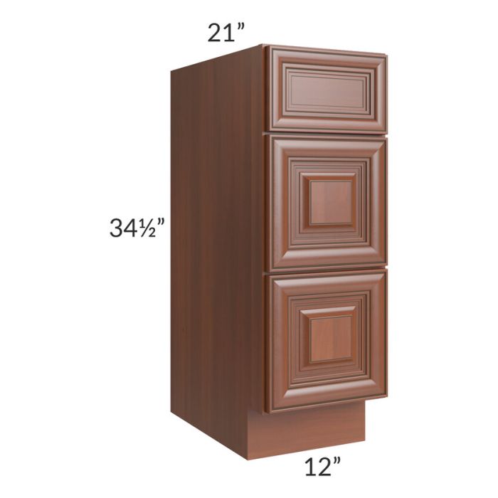 Description / Phoenix Caramel Glaze 12" Vanity 3-Drawer Base Cabinet