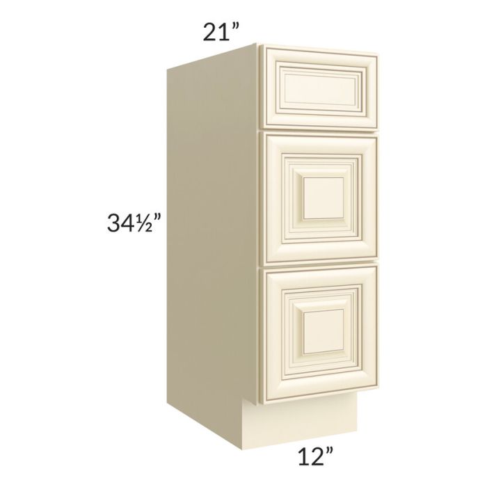 Description / Phoenix Cream Glaze 12" Vanity 3-Drawer Base Cabinet